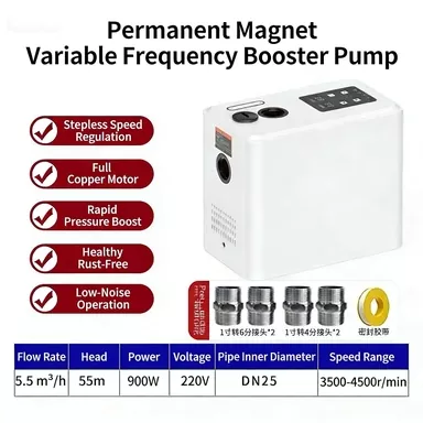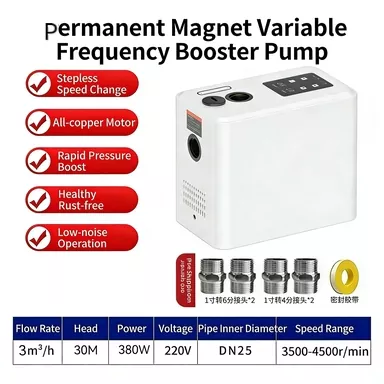 स्थायी चुंबक परिवर्तनीय आवृत्ति बूस्टर पंप को कस्टम-निर्मित किया जा सकता है, जो घर पर कम पानी के दबाव के लिए बिल्कुल उपयुक्त है। 8 मीटर तक मजबूत स्व-सक्शन, तेज दबाव बढ़ाना, स्थिर जल प्रवाह। शांत, ऊर्जा की बचत, आसान स्थापना। घरेलू नल, शॉवर और वॉटर हीटर के लिए आदर्श।