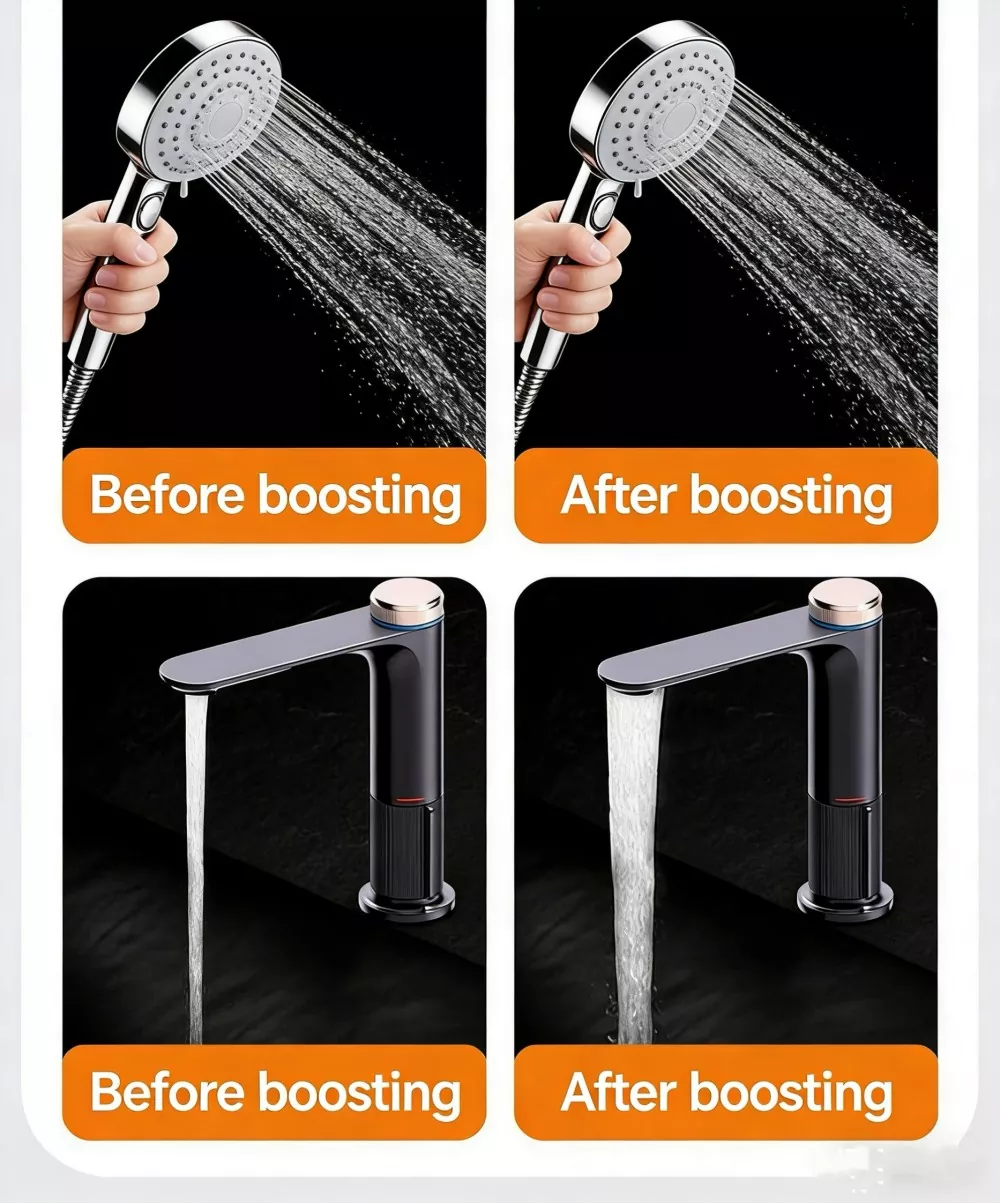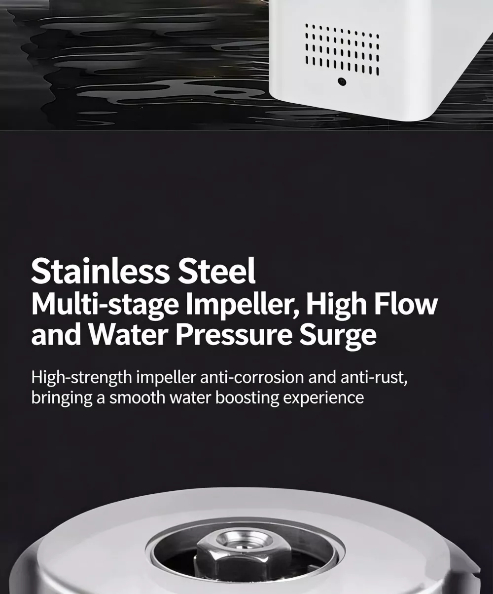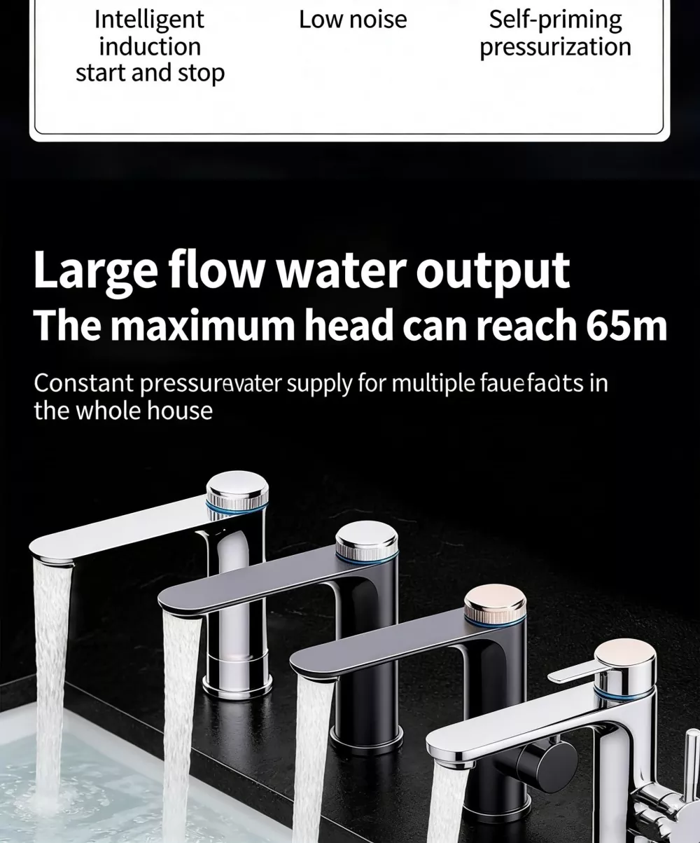 हाई-स्पीड मोटर: अंतर्निर्मित 6500 आरपीएम हाई-स्पीड मोटर बढ़ती शक्ति लाती है, मजबूत और स्थिर बड़े प्रवाह वाले पानी का उत्पादन प्रदान करती है, और अपर्याप्त घरेलू पानी के दबाव की समस्या को पूरी तरह से हल करती है।