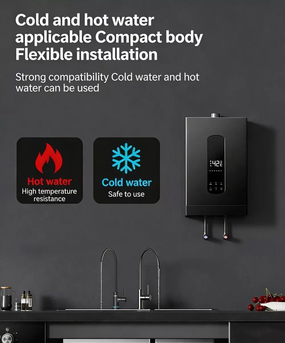 संक्षारण प्रतिरोधी इंटरफ़ेस: पानी के इनलेट और आउटलेट शुद्ध तांबे की सामग्री से बने होते हैं, जिसमें उत्कृष्ट संक्षारण प्रतिरोध और जंग प्रतिरोध होता है, जो दीर्घकालिक उपयोग के लिए टिकाऊ, सुरक्षित और पर्यावरण के अनुकूल होता है, और घरेलू पीने के पानी के सुरक्षा मानकों को पूरा करता है।